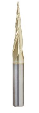 Amana Tool 46280-S CNC 2D and 3D Carving 6.2 Deg Tapered Angle Ball Nose x 1/32 D x 1/64 R x 1 CH x 1/4 SHK x 2-1/4 Inch Long x 3 Flute SC ZrN Coated Router Bit