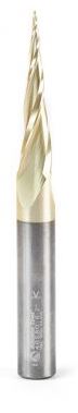Amana Tool 46580 CNC 2D and 3D Carving 6.2 Deg Tapered Angle Ball Nose x 1/32 D x 1/64 R x 1-1/2 CH x 3/8 SHK x 3-1/2 Inch Long x 3 Flute SC ZrN Coated Router Bit