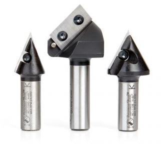 Amana Tool AMS-157 3-Pc 3D CNC Signmaking, Lettering & Engraving Insert SC 45, 60, & 90 Deg x 1/2 SHK V-Groove Router Bit Pack