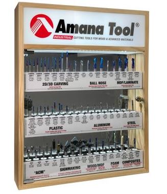Amana Tool AMS-CNC-60 CNC Master Router Bit Collection Includes 57 SKU's and LED Illuminated, Mirrored Interior and Solid Wood Display