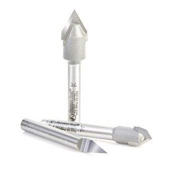 Amana Tool AMS-129 3-Pc Solid Carbide and Carbide Tipped 30, 60 and 90 Deg V-Groove Router Bit Pack, 1/4 Inch Shank