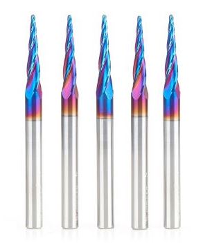 Amana Tool 46282-K-5 5-Pc CNC Solid Carbide Spektra Extreme Tool Life Coated Tapered Spiral 2D/3D Carving 1/16 Dia x 1/4 Inch SHK Router Bit Pack