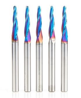 Amana Tool 46286-K-5 5-Pc CNC Solid Carbide Spektra Extreme Tool Life Coated Tapered Spiral 2D/3D Carving 1/8 Dia x 1/4 Inch SHK Router Bit Pack