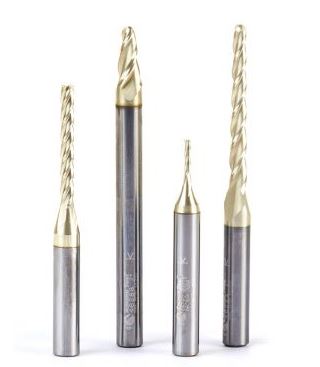 Amana Tool AMS-141 4-Pc CNC 2D and 3D Carving Ball Nose & Flat Bottom ZrN Coated SC 1/4 Inch SHK Router Bit Collection Includes 46284 (1/16), 46288 (1/8), 46290 (1/16) & 46292 (1/8 D.)