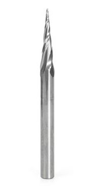 Amana Tool 46280-U CNC 2D and 3D Carving 6.2 Deg Tapered Angle Ball Nose x 1/32 D x 1/64 R x 1 CH x 1/4 SHK x 3 Inch Long x 3 Flute SC Router Bit