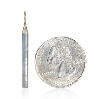 Amana Tool 46093 Solid Carbide Spiral 1.2mm Dia x 5mm Cut Height x 1/8 Inch Shank x 35mm Long Composite, Fiberglass & Phenolic Cutting ZrN Coated 3 Flute Up-Cut Router Bit