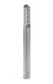 Amana Tool 48001 Medium Burr with Drill Point and 135 Deg Drill End 1/4 D x 3/4 CH x 1/4 SHK x 2-1/2 Inch Long SC Fiberglass and Composite Cutting Router Bit