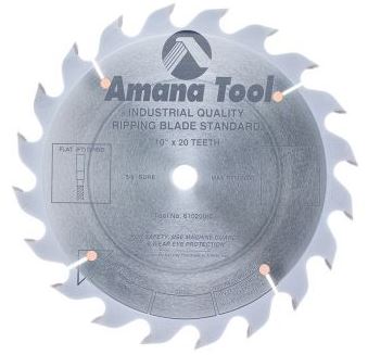 Amana Tool 610200 Carbide Tipped Ripping Standard 10 Inch D x 20T FT, 18 Deg, 5/8 Bore, Circular Saw Blade