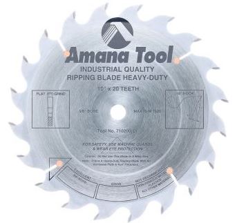 Amana Tool 710200 Carbide Tipped Heavy-Duty Ripping 10 Inch D x 20T FT, 18 Deg, 5/8 Bore, Circular Saw Blade