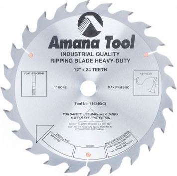 Amana Tool 712240 Carbide Tipped Heavy-Duty Ripping 12 Inch D x 24T FT, 18 Deg, 1 Inch Bore, Circular Saw Blade