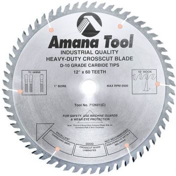 Amana Tool 712601 Carbide Tipped Cut-Off and Crosscut 12 Inch D x 60T TCG, 15 Deg, 1 Inch Bore, Circular Saw Blade