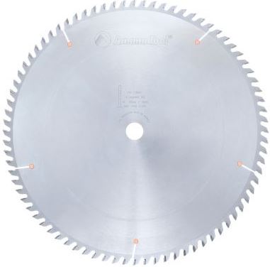Heavy-duty production blade featuring increased thickness of plate and kerf and more aggressive hook angle. For plastic laminated materials, composition board and plywood.