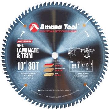 Amana Tool 610801C Electro-Blue Carbide Tipped Fine Cut-Off and Crosscut 10 Inch D x 80T TCG, 10 Deg, 5/8 Bore, Non-Stick Coated Circular Saw Blade