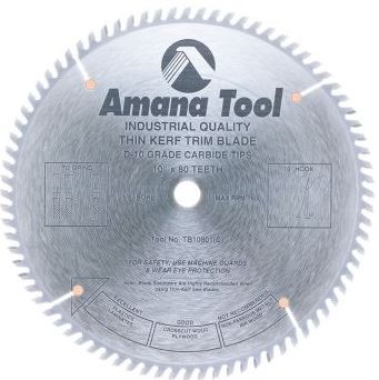 Amana Tool TB10801 Carbide Tipped Thin Kerf Trim 10 Inch D x 80T TCG, 10 Deg, 5/8 Bore, Circular Saw Blade