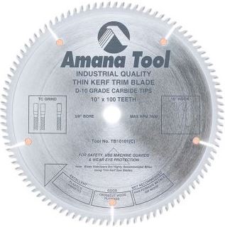 Amana Tool TB10101 Carbide Tipped Thin Kerf Trim 10 Inch D x 100T TCG, 10 Deg, 5/8 Bore, Circular Saw Blade
