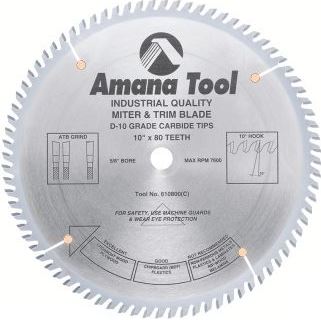 Amana Tool 610800 Carbide Tipped Trim 10 Inch D x 80T ATB, 10 Deg, 5/8 Bore, Circular Saw Blade