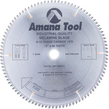 Amana Tool MB12960 Carbide Tipped Double-Face Melamine 12 Inch D x 96T H-ATB, -6 Deg, 1 Inch Bore, Circular Saw Blade