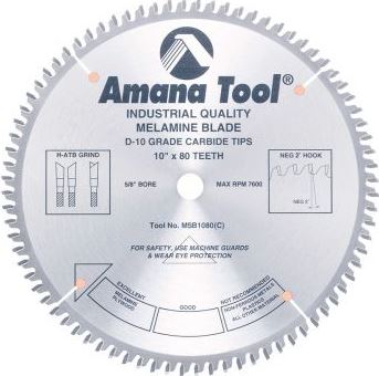 Amana Tool MSB1080 Carbide Tipped Double-Face Melamine 10 Inch D x 80T H-ATB, -2 Deg, 5/8 Bore, Circular Saw Blade
