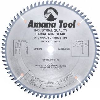 Amana Tool 610721 Carbide Tipped Solid Surface 10 Inch D x 72T M-TCG, 0 Deg, 5/8 Bore, Circular Saw Blade