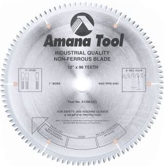 Carbide tipped saw blades for cutting relatively thick-walled aluminum, Aluminum Composite Material (ACM) and non-ferrous metal bars.