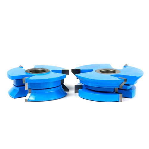 Amana Tool SC420 2-PC Carbide Tipped 3-Wing Wainscot w/V Cutters 3-1/2 D x 1 CH x 45 Deg x 1/2 & 3/4 Inch Bore Shaper Cutter Set for 3/4 Inch Material