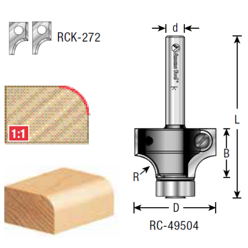 Amana Tool RC-49504 1" CD x 1/4" Radius x 1/2" CL x 1/4" Shank x 2-1/16" OAL Corner Round RCK-272 Repl. Knives 47706 Repl. BB