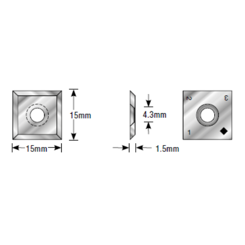 Amana Tool RCK-502 15 x 15 x 1.5mm 35° Bevel 4 Cutting Edges Insert Knife For Gen. Purpose Wood, Chipboard, Plywood
