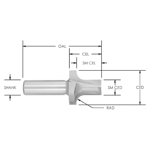 Southeast Tool SE2074 1-1/8" CD x 1-5/16" CL x 1/2" SHANK x 1/4" RADIUS x 1/2" SM. CD