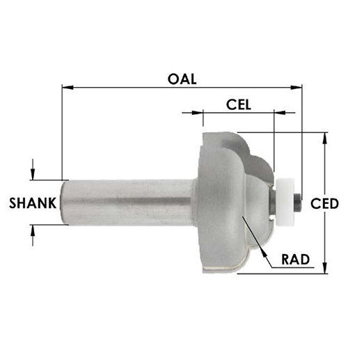 Southeast Tool SE2968 1-1/2" CD x 3/4" CL x 1/2" SHANK x 2-1/2" OAL x 1/4" RADIUS