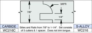 Charles Schmidt WC216C 4 x 1 1/4 BORE 3 WING CARBIDESTILE & RAIL SET-3/8" BEAD