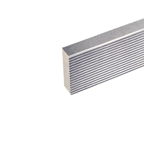 Length - 60 mm Width - 1" Thickness - 5/16" Corrugations - 60 Degree Steel - Hardened 5140 Corrugated Filler Wedge steel for filling empty corrugated knife pockets.